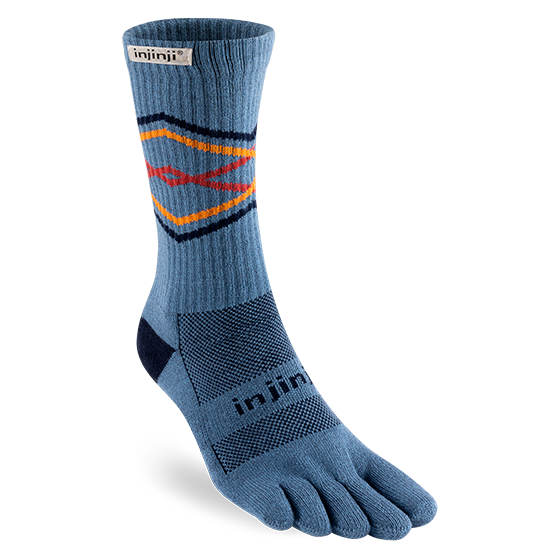 Our toesock design minimizes friction between the toes to help eliminate blisters, frees them to splay naturally, and lets you utilize your whole foot on narrow, uneven trails. The crew length rides high to seal out debris, and a band under the arch adds support. COOLMAX® fibers and a mesh top keep feet dry and cool, nylon fibers add durability, and midweight cushioning protects your feet.